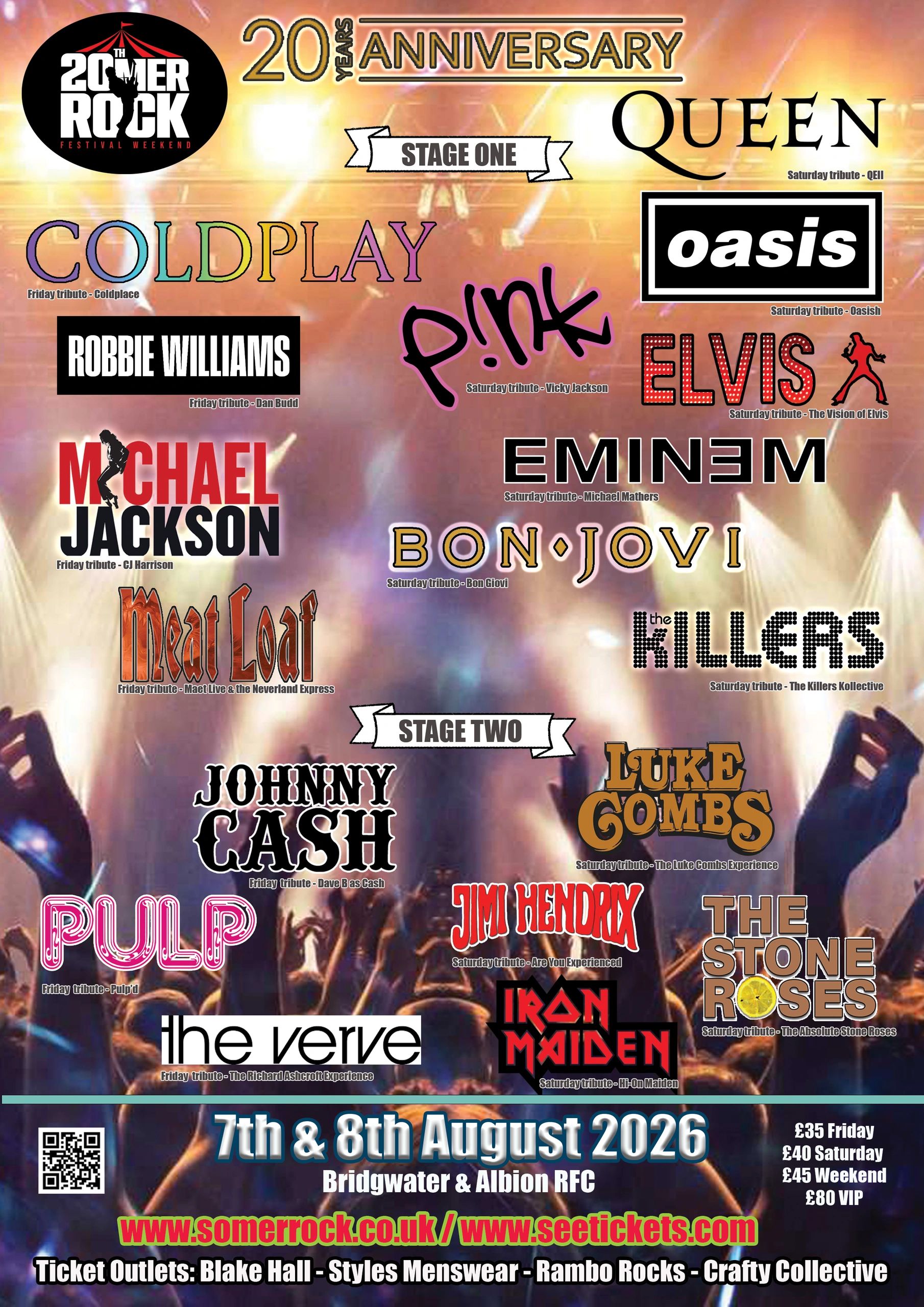 August 7th/8th/9th 2026 will be our 20 year anniversary of SOmerRock - WATCH THIS SPACE!
